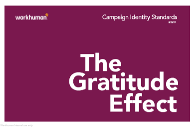 Since Workhuman products, movement, and mission are founded on gratitude and positivity, we wanted to properly celebrate World Gratitude Day on Sept. 21 and beyond. We rolled out “The Gratitude Effect,” the first multi-channel, umbrella campaign that provided brand cover for individual tactics across departments (including internal communications and customer marketing) and also a platform to release data from our in-house research team. For this campaign, I worked with our creative director of Brand to conceptualize the design and overarching language by creating brand identity standards and did all the copy and execution, including regional billboards, radio spots, social posts, video scripts for pre-roll, and customer outreach communications and toolkit.